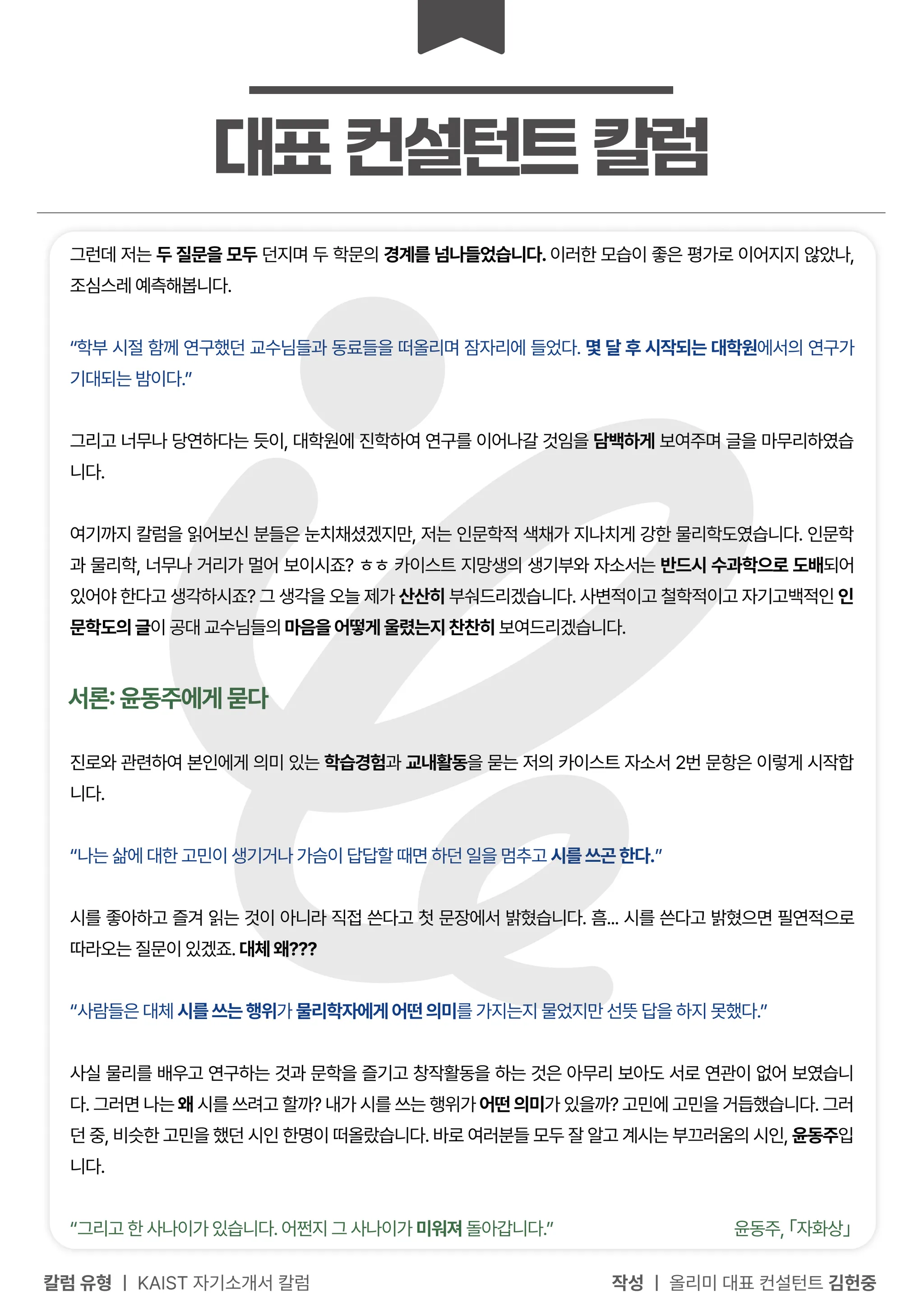 의예과 최서연 컨설턴트