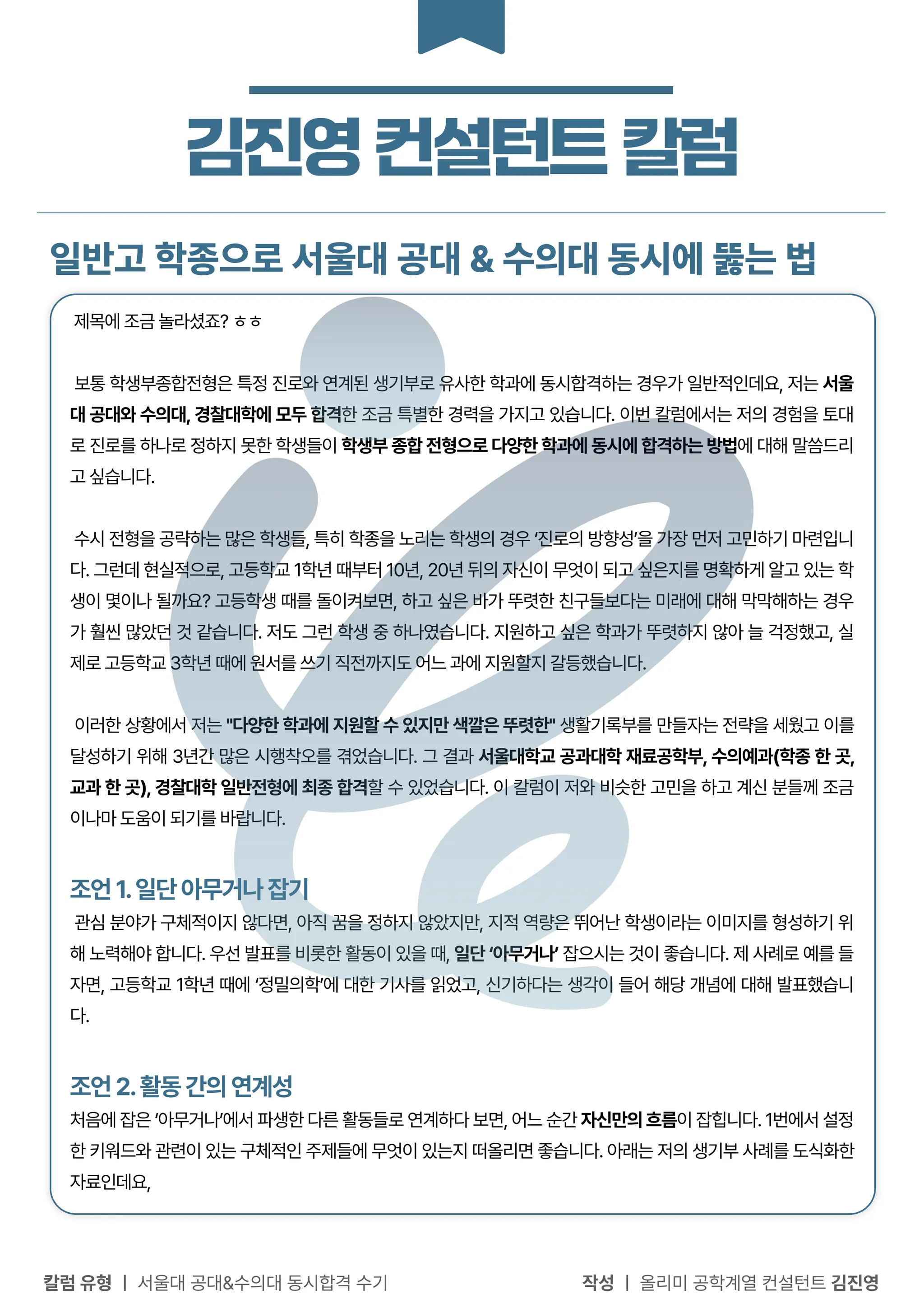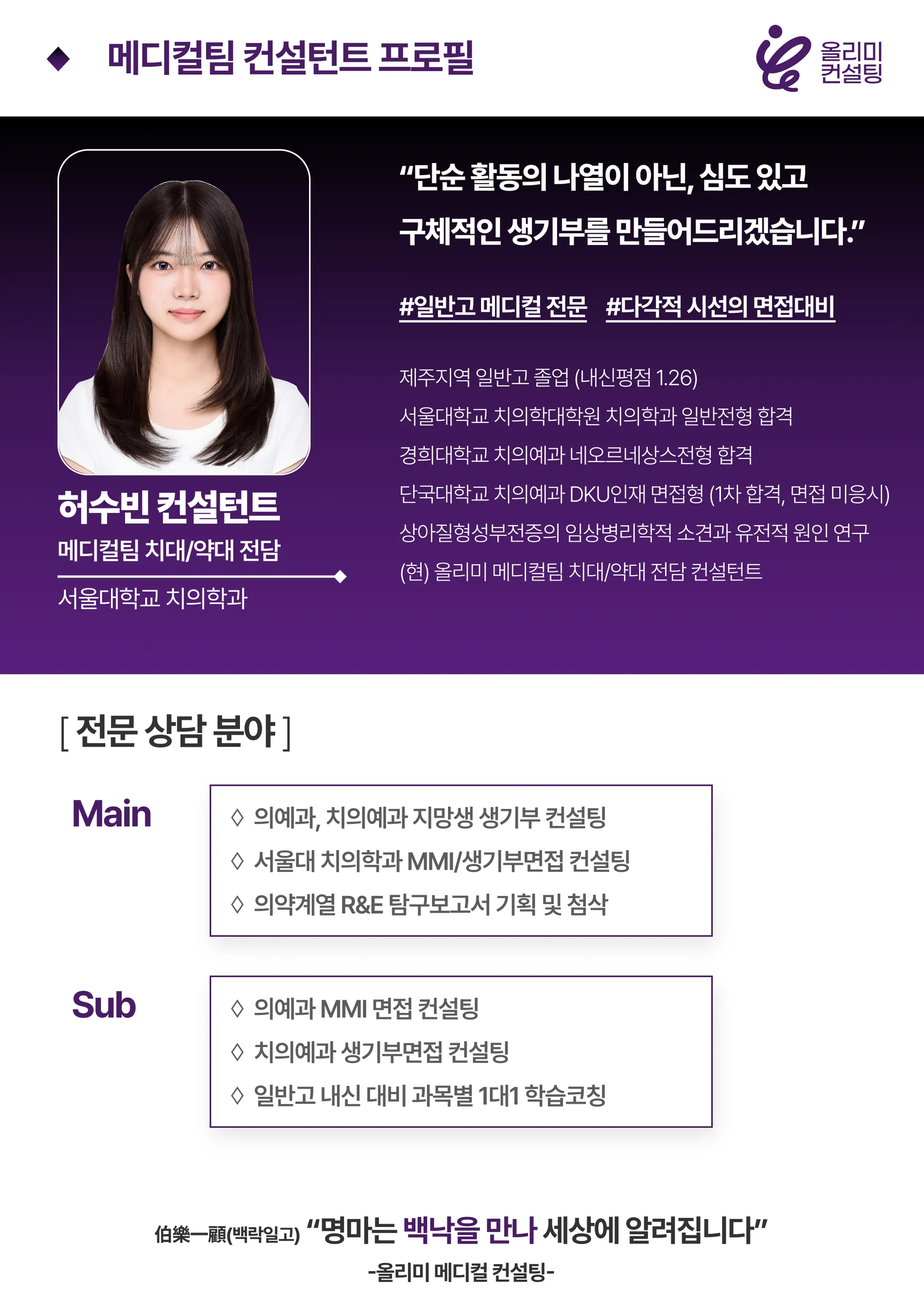 치의학과 허수빈 컨설턴트