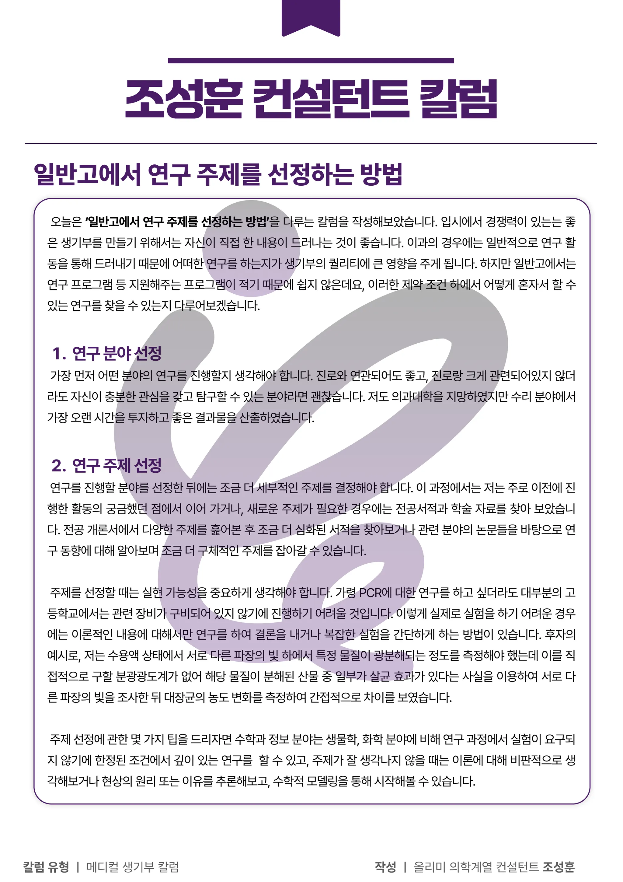 의예과 조성훈 컨설턴트